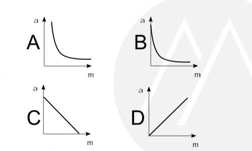 Which of the graphs in the figure I best represents the relationship between the acceleration of a moving car and its mass, when the force acting on the car is constant?