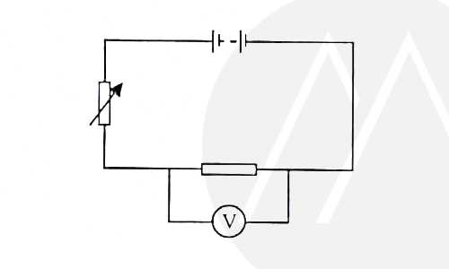 A voltmeter is connected in a circuit as shown in the figure. The voltmeter is connected as such because it has a very: