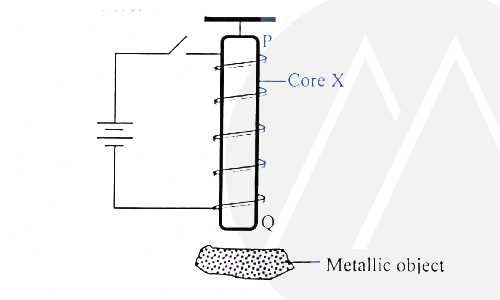 The figure shows an electromagnet designed to pick up some metallic objects and released elsewhere.
