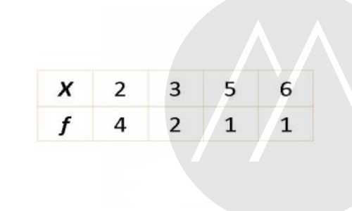 Given the frequency distribution table with variable, x, and corresponding frequency, f.