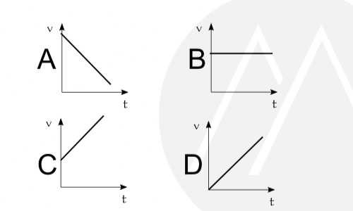 Which of the graphs in the figure represents a velocity-time graph for an object accelerating uniformly from rest?