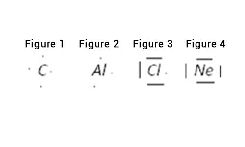 Soit les figures suivantes (1, 2, 3, 4). La représentation de Lewis des éléments Al (Z = 13) est celle de :